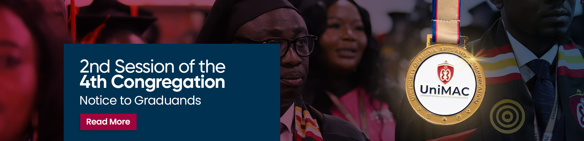 I’m absolutely thrilled to welcome you to one of Ghana’s fastest-growing specialised public universities – the University of Media, Arts, and Communication (UniMAC). UniMAC is the first public university in Ghana established by an Act of Parliament (Act 1059), which merges three specialised institutions comprising the erstwhile Ghana Institute of Journalism (GIJ), Ghana Institute of Languages (GIL) and National Film and Television Institute (NAFTI).