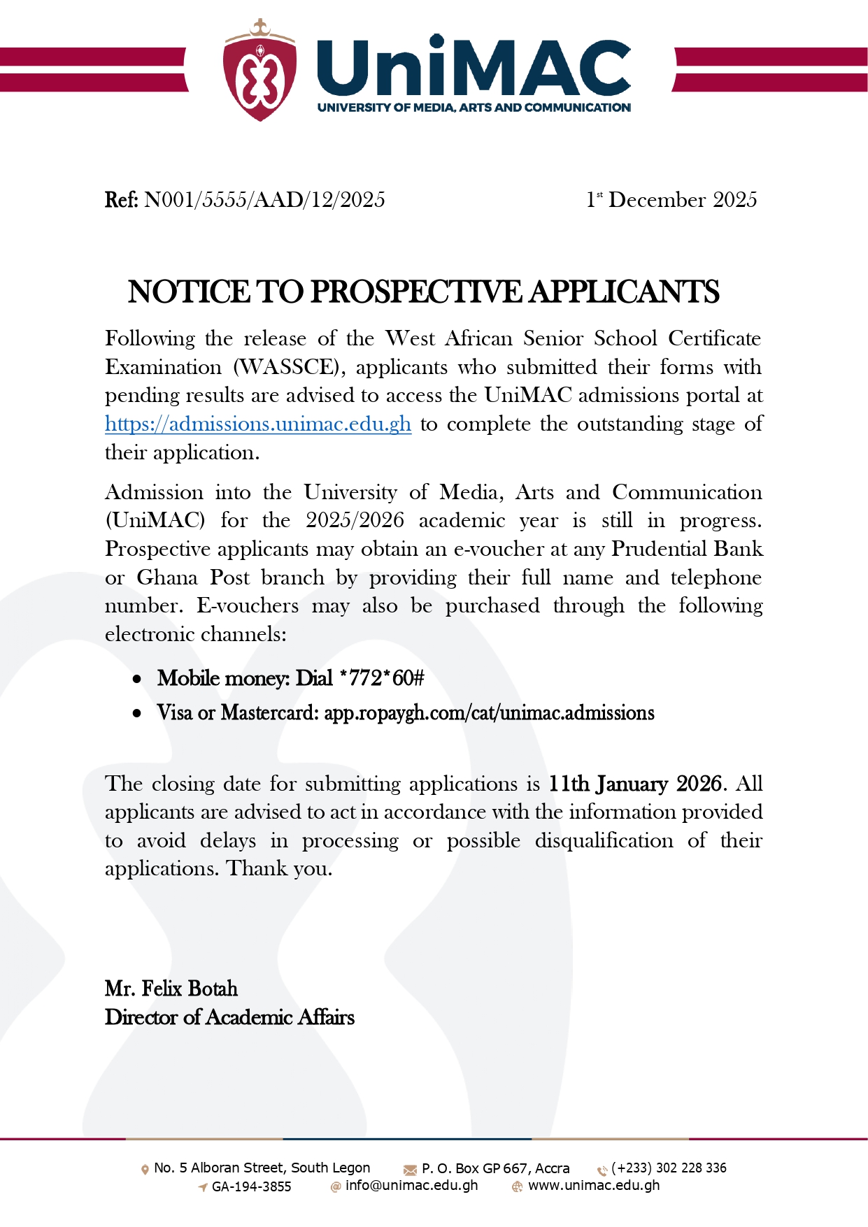Notice to Prospective Applicants 2025/2026