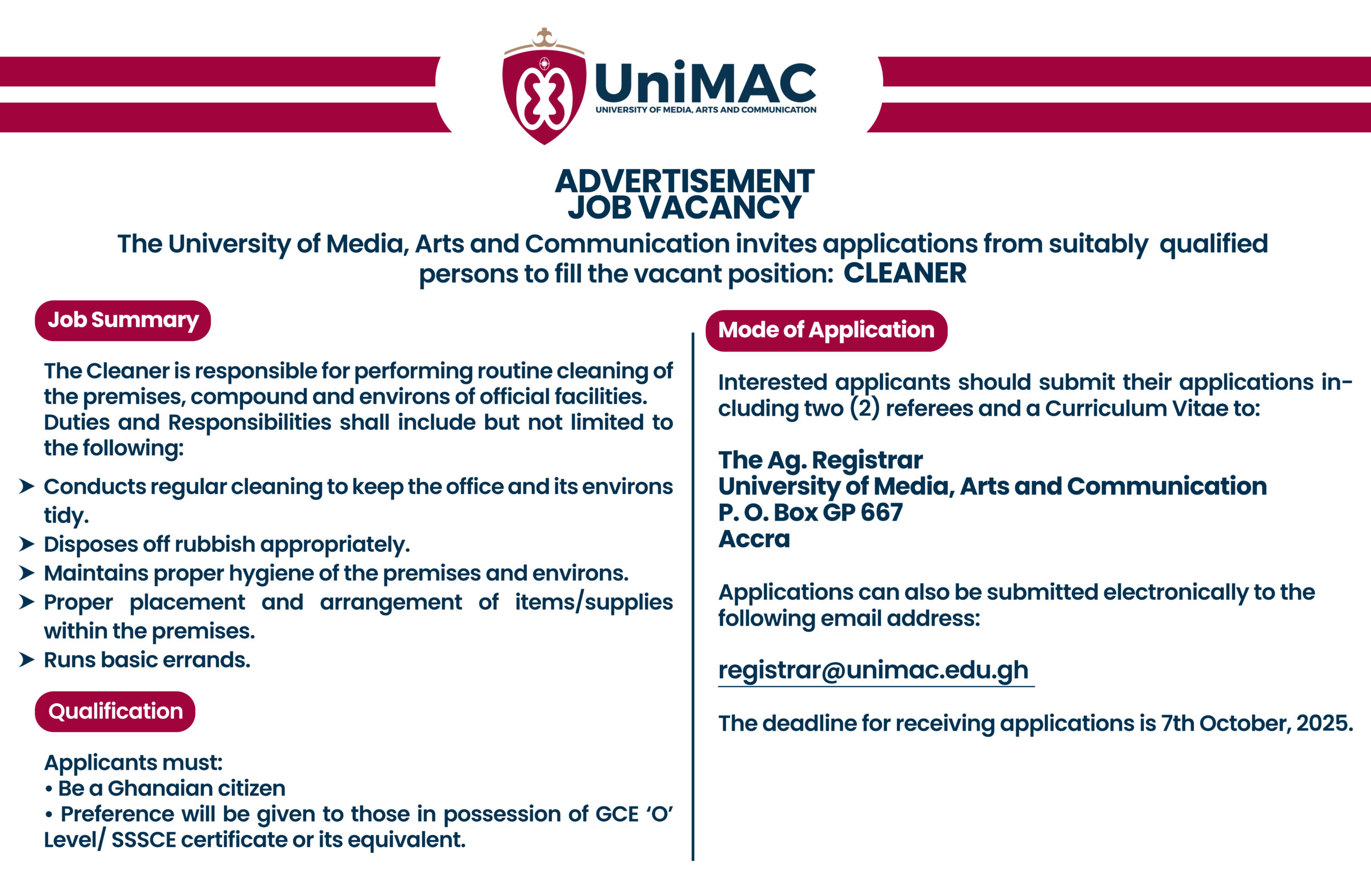 Management, Faculty and Staff of UniMAC-IFT and Staff of Parliamentary Broadcast DepartmentOn Tuesday, 14th October 2025, the Institute of Film and Television (IFT) at the University of Media, Arts and Communication (UniMAC), officially commenced a five-day intensive training programme for staff of the Parliamentary Broadcasting Department.This initiative is designed to enhance technical and creative competencies...Read More